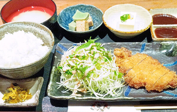 ・鶏の唐揚げ2個、白身魚フライ、トンカツ60g